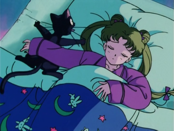 This episode is focused around a very "little girls" topic - hairdressers! I think this is a good topic to start the run of filler with after the serious demeanor of the last three episodes. The first thing I notice is that Usagi's monologue at the start of every episode has been removed; this time, it's been replaced with Usagi having a PTSD-esque dream about the burning of the Moon Kingdom and losing Tuxedo Mask, which is sadly undercut by the comedy of Usagi crushing Luna under her arm in her sleep. I don't like that they added the comedic bit here and I think it does undercut the serious tone of the scene a little; it's not like they haven't had purely serious scenes before.